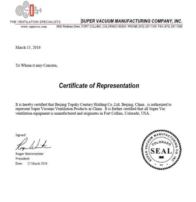 美國SUPER公司正式授權(quán)北京凌天世紀(jì)控股股份有限公司作為其機動排煙機,水驅(qū)動排煙機,電池驅(qū)動排煙機在華的總代理。 SUPER是世界知名消防排煙裝備制造商。