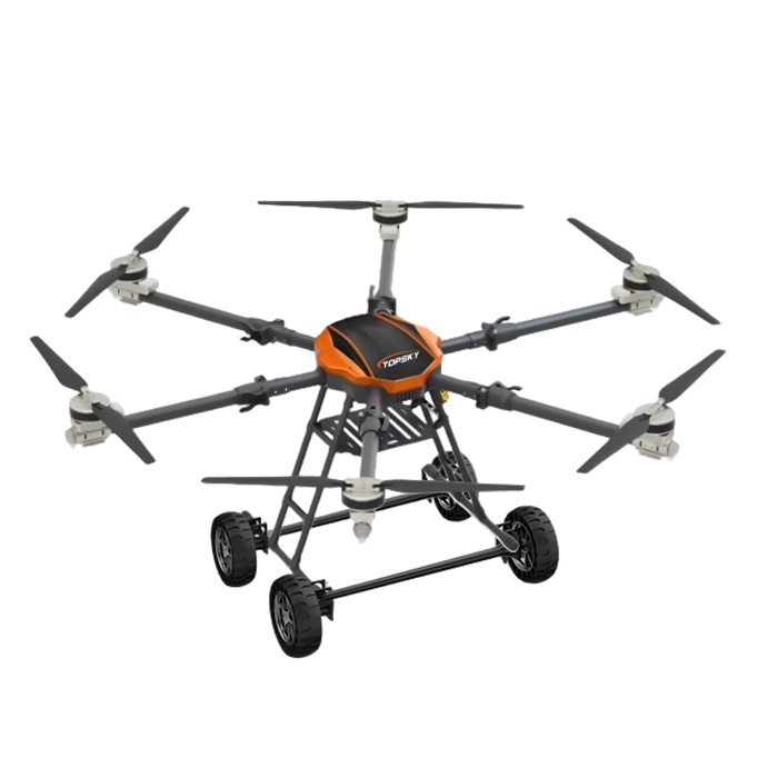 陸空兩棲核生化環境偵檢無人機采用六軸六槳設計,載重大,續航長,并且機臂可折疊、標準化負載接口、集成航電系統、雷達避障傳感器、RTK與北斗雙冗余定位系統。搭載長距離實時通訊鏈路,實時傳輸現場環境數據及無人機飛行數據。配備智能控制系統,可滿足多種場景和多種方式的作業需求。裝配陸行輪,可實現空中飛行,地面行走雙模式切換,可在不同場景下切換合適的作業模式。無人機搭載有輻射探測系統、化學氣體監測系統、生物氣溶膠監測系統,可在核生化環境下的進行偵查檢測。