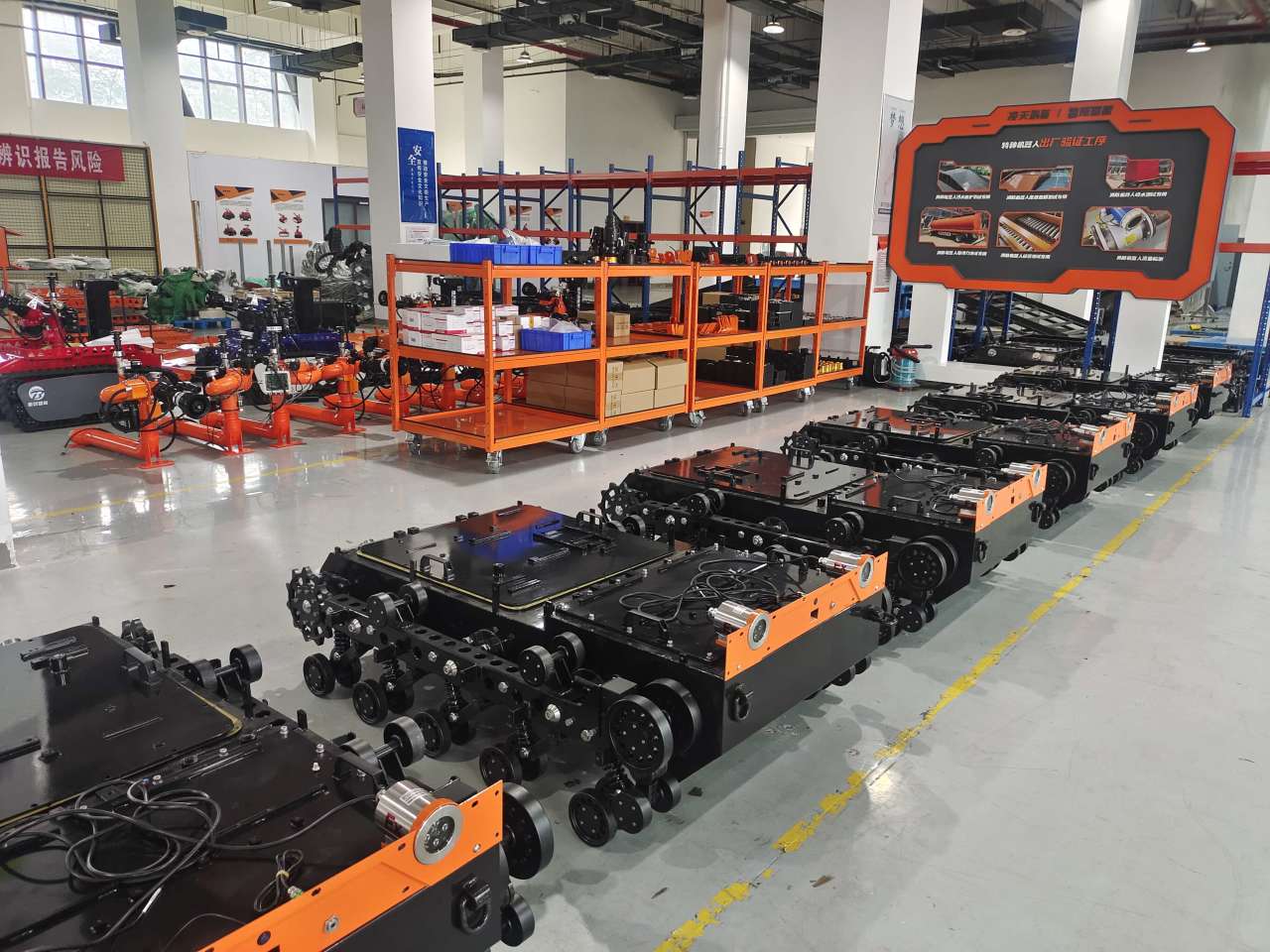 1. 主要功能:機器人底盤采用鋰電池電源作為動力源,使用無線遙控的方式遠距離操控,可搭載形式多樣,原地旋轉設計可使得運更靈活。