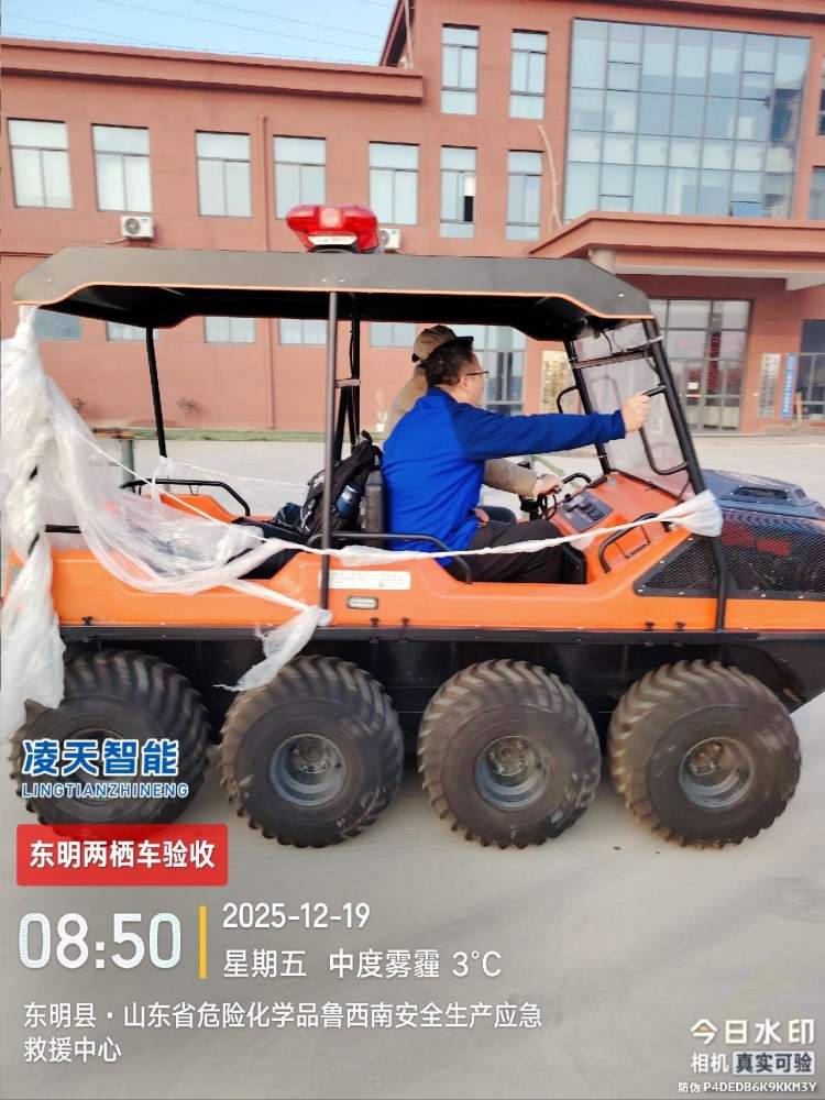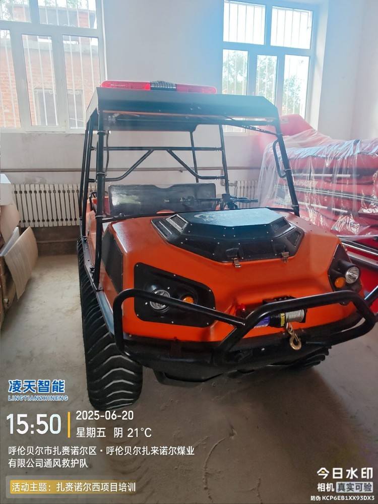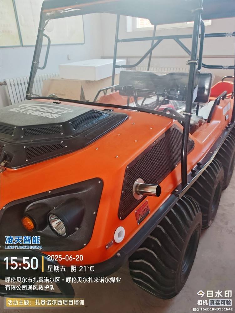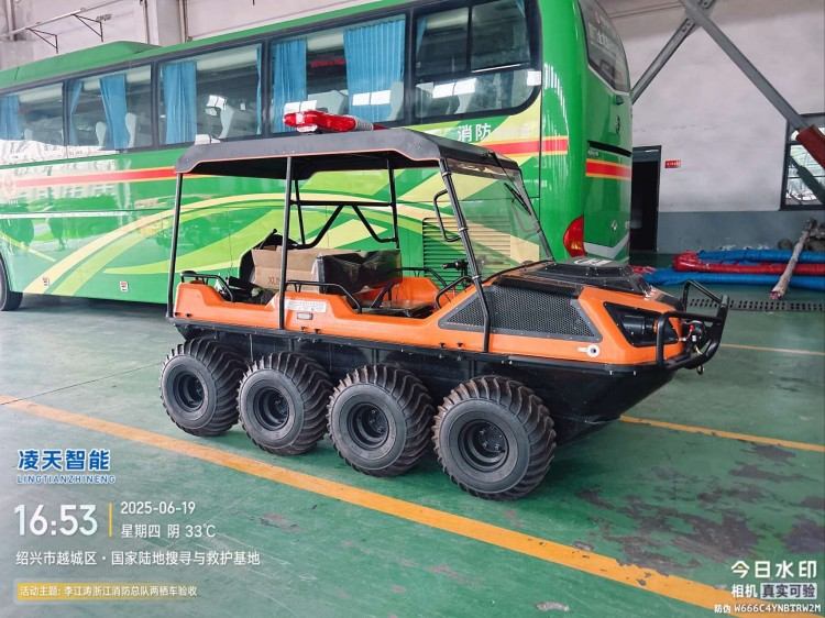 全地形:上山下水,爬坡過坎,泥潭沼澤,8×8低壓輪胎適合所有救援場景,最大可以乘坐6人。