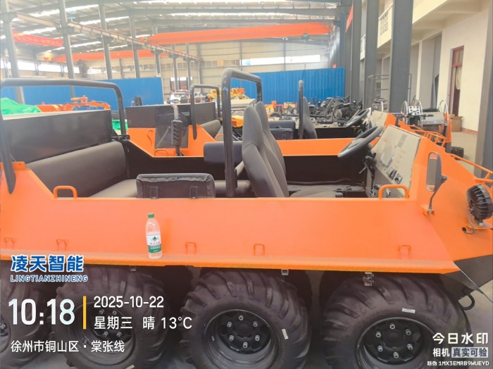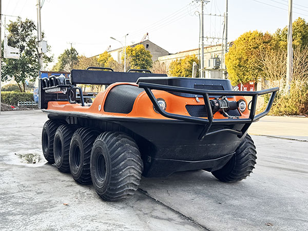 車體采用高分子復合材料真空一次成型,底盤采用高強度汽車大梁鋼材焊接而成,全密封設計適配全場景受力需求,同時確保車輛在水陸環境中均能保持穩定。