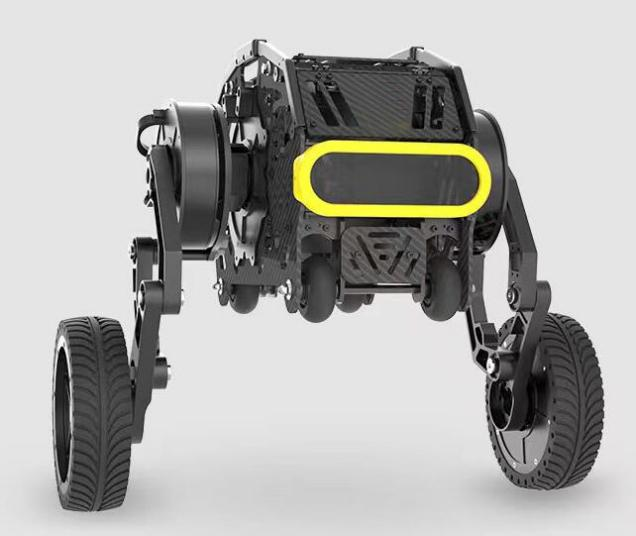 本款雙足機(jī)器人是一種足部裝有動力輪子的雙足平衡式移動機(jī)器人。這臺機(jī)器人可以將輪式機(jī)器人的速度優(yōu)勢,和足式機(jī)器人的機(jī)動越障性能結(jié)合,可以在多地形下高效、靈活的運(yùn)動。這種機(jī)器人也是當(dāng)下學(xué)術(shù)研究的熱點(diǎn)。機(jī)器人的腿部和機(jī)體結(jié)構(gòu)由本末科技自主研發(fā)設(shè)計,總共由六個直驅(qū)型關(guān)節(jié)電機(jī)M1502D驅(qū)動。