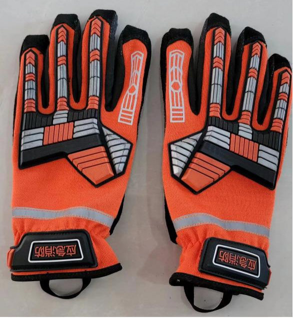采用立體剪裁,符合人體工程學,更加貼合手部,增加靈活性和舒適性。主體顏色采用橘紅色和黑色材料,與搶險救援服搭配。指尖采用翻轉式設計,增加指尖的貼合度。五指指尖補強耐磨布,增加指尖保護,拇指指尖具有觸屏功能。手背關節處采用芳綸雙面針織布和TPR防撞條,可達到防砸抗震,下端為銀色反光標記,寬度為1cm銀色反光條。